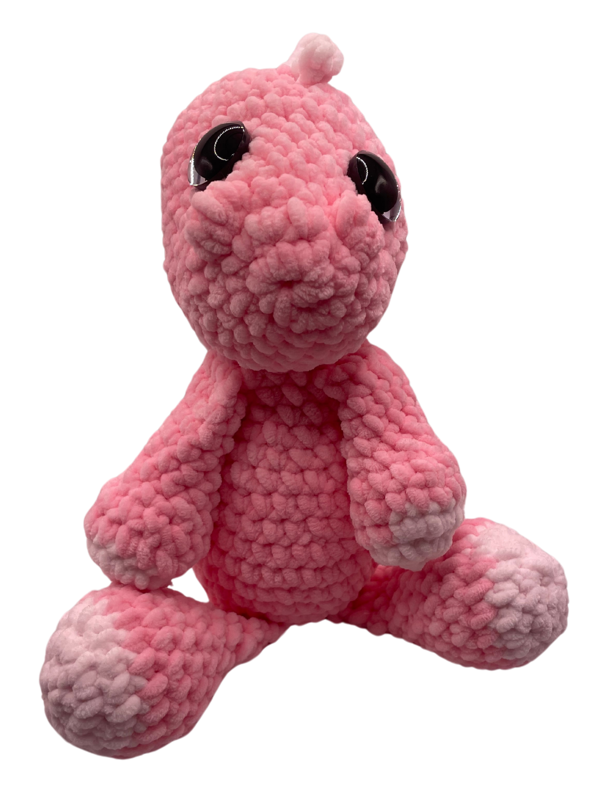 Entdecke den kuscheligen gehäkelten Dino mit beweglichen Armen und Beinen! Mit niedlichen großen Augen und flexiblen Gliedmaßen ist er perfekt zum Spielen und Kuscheln. Sein grünes und rosa Design macht ihn zu einem echten Blickfang. Hole dir jetzt dein eigenes Dino-Abenteuer nach Hause!